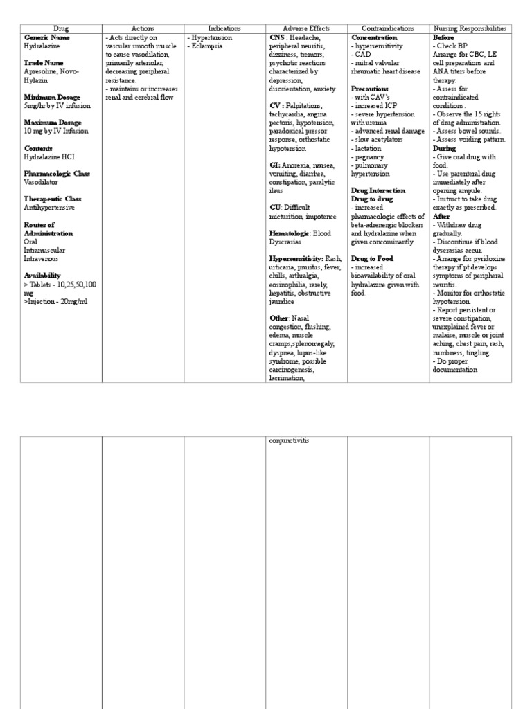 Med Card 7 Hydralazine Instructions For Each Chapter That Teaches About Medications Fill In Studocu
